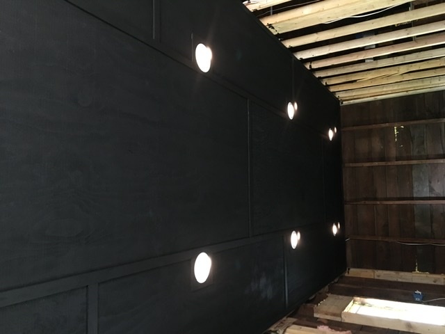 Update- power is in, overhead lights in the garage part, ceiling in the brewhouse. Going to trim out the ceiling and paint it black I think. Garage doors tomorrow!